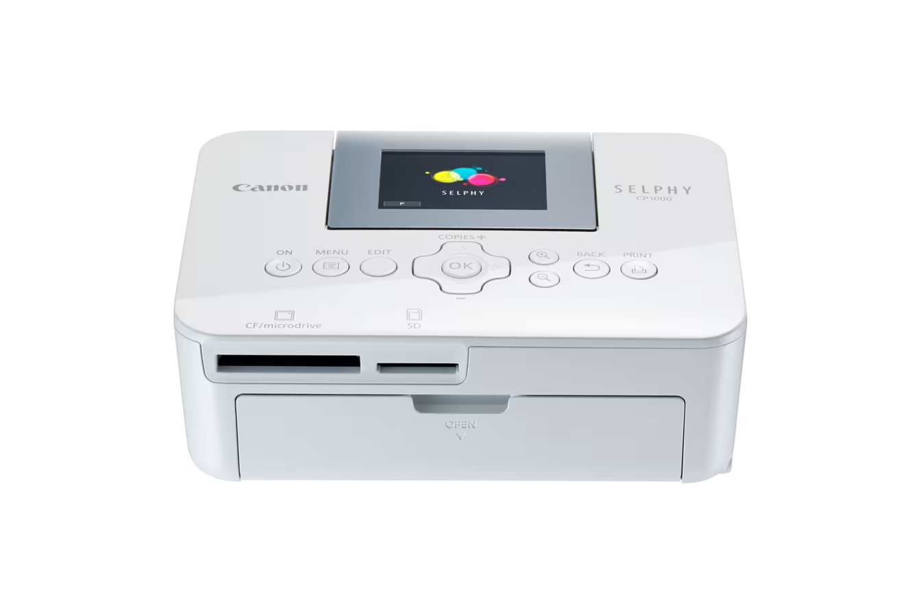 L’imprimante Canon SELPHY CP1000 est une imprimante photo compacte et portable utilisant la sublimation thermique pour des tirages de qualité labo (300×300 dpi) durables, idéale pour les photos 10x15cm, avec écran LCD 2.7″ inclinable pour prévisualisation, et impression directe via USB, carte mémoire (SD, CF), PictBridge, sans Wi-Fi intégré.