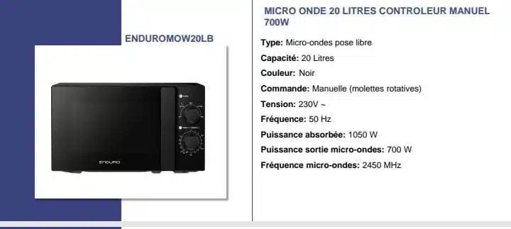 Soyez le premier à laisser votre avis sur “MICRO ONDE ENDURO 20LITRES MANUEL NOIR MOW20LB”